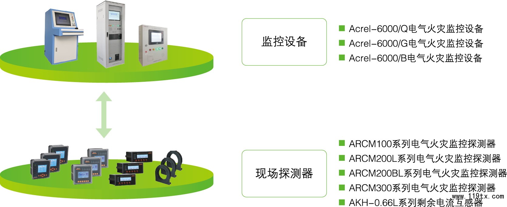 Acrel-6000電氣火災監控系統采用分層分布、開放式結構設計,主要由監控設備、監控探測器等組成。
