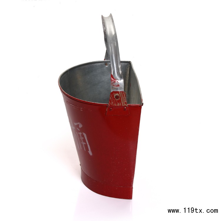 消防桶:供撲救火災時,用以盛裝黃沙,撲滅油脂、鎂粉等燃燒物。呈扇形,可以在撲救火災時,有效的散開桶內黃沙,增大撲滅過火面積,達到救火的目的。