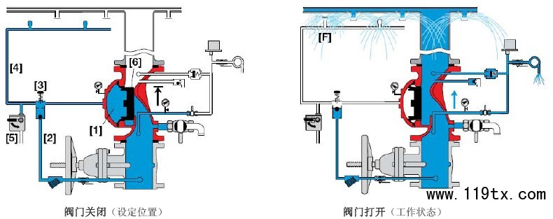 BERMAD(伯爾梅特)的典型雨淋閥帶手動(dòng)復(fù)位開關(guān)使雨淋閥感應(yīng)電、液壓、氣壓或電/氣信號(hào)打開后即保持開啟狀態(tài)。雨淋閥只有通過手動(dòng)復(fù)位開關(guān)來復(fù)位.
