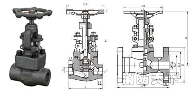 四:J41H-16 J11H-16 J61H-16鍛鋼截止閥主要外形和連接尺寸
