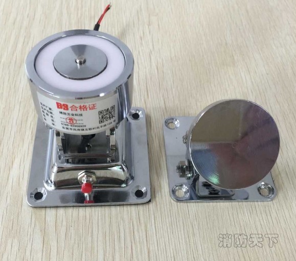 安裝說明:控制器一般安裝在門上方或吊頂內管井內,帶有測試按鈕,電磁鐵一般安裝在墻面或地上的預定位置,并能水平左右自由轉動電磁鐵,將吸板背面海棉膠墊保護紙撕去后對準電磁鐵(安裝孔處于水平位置)將門扇開啟到剛好與吸板平面貼合粘住,用螺絲(拉釘)將吸板固定在門扇上。安裝時吸板必須對準電磁鐵,而且二者吸合面必須緊密,如有間隙將使吸力明顯減小,此時垂直方向可以松緊吸板或安裝支座的鑼釘來調節膠墊從而減小間隙,最后擰緊內六角螺栓將電磁鐵水平角度定位。