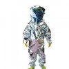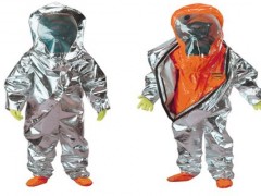 全封閉正壓呼吸器內置式防化服。兩件式設計,外層為玻璃纖維鍍鋁隔熱防護層,可抵御95%以上的1600度高溫熱輻射,防護閃燃爆燃,具有阻燃功能,可防護1400度高溫鋼水的潑濺。