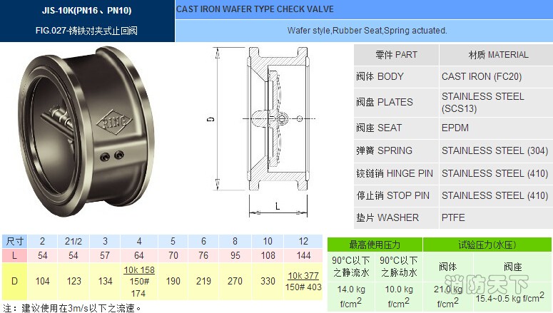 臺灣東光FIG.027鑄鐵對夾止回閥 JIS10K鑄鐵止回閥 東光逆止閥