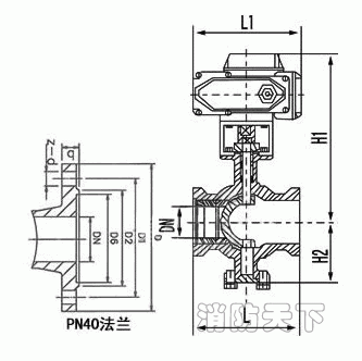 | 六、產(chǎn)品結(jié)構(gòu)圖:Q947F電動(dòng)固定球閥 |