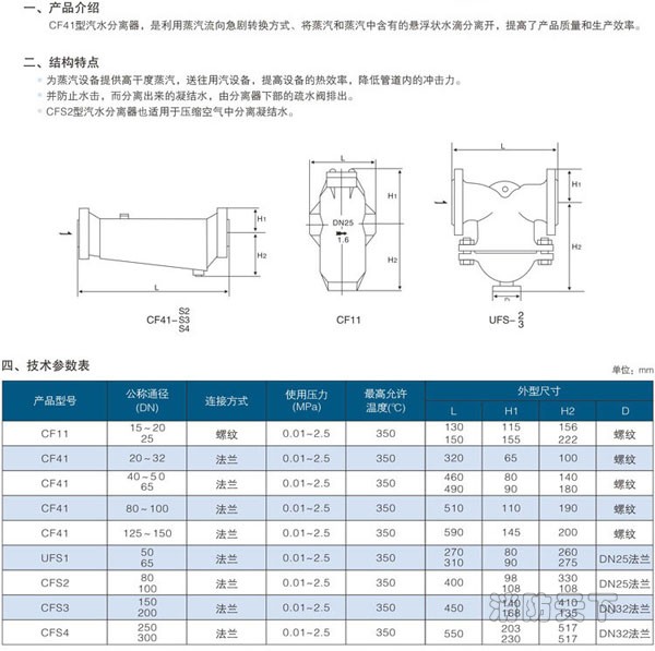 CF41型汽水分離器也適用于各種氣體和液體的分離。