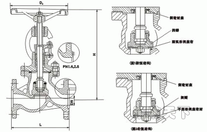 注:1.截止閥只許介質單向流動,安裝時有方向性。