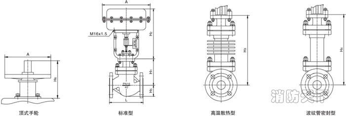 標準型(-17~+250℃)、高溫型(+250~+450℃)、低溫型(-40~-196℃)、波紋管密封型(-40~+350℃) |