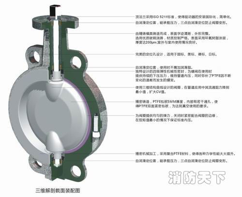 防腐蝕襯氟蝶閥采用對分兩片閥體組合,閥座與閥體內(nèi)襯一體化,閥門工作時(shí),只有全塑閥座與襯塑蝶板與介質(zhì)接觸,產(chǎn)品可承受“除熔融堿金屬和元素氟”外的任何介質(zhì)腐蝕,其中D71F46閥桿與蝶板(鍛)為一體,表面均勻包覆一層FEP。閥體通道內(nèi)表面光滑,流體阻力小,CV值高,流通能力強(qiáng),扭矩適中,采用四級密封結(jié)構(gòu)并在密封面外配以耐溫抗老化的SI橡膠的彈性襯墊閥座,完全達(dá)到介質(zhì)的零泄漏。