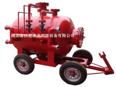 四、主要用途 該系列產品廣泛用于油庫、石油、化工、天然氣、電廠、紡織棉麻、碼頭、加油站、倉儲、高層建筑、燃油鍋爐等場所。泡沫滅火裝置是專為汽車庫、燃油鍋爐房等重要場所研制的一種新型、高效的消防產品。系統的關鍵部件自調型泡沫比例混合器是泡沫滅火設備的一次技術革新。它能在較大流量范圍內始終保持一定的混合比,再加上水成膜泡沫滅火劑其防護膜的滅火作用,適用于非吸氣型泡沫噴射裝置,使系統具有如下顯著特點: (1)泡沫滅火劑有成膜性和膜自愈性??箯腿寄芰?; (2)泡沫液可貯存20年不變質。而一般泡沫液只能貯存2年; (3)滅火效力高。是一般泡沫滅火劑2~3倍; (4)適用于非吸氣型泡沫噴射裝置; (5)適用的泡沫混合液流量范圍大,混合比準確,適用于3%型和6%型泡沫液; (6)壓力損失?。?(7)動作靈活。屬機械傳動; (8)耐蝕。部件由不銹鋼和銅合金制造; (9)泡沫液儲罐內置膠囊,使水和泡沫液隔離,可連續多次使用; (10)可與自動噴水滅火系統聯用,并可實現自動; (11)借助水源壓力來實現泡沫液供給,不需另設泡沫動力源; (12)適于自動噴水滅火系統的改造僅需增加泡沫比例混合器和泡沫液儲罐。(13)可以移動操作,靈活方便。