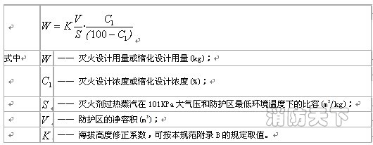 4.1防護(hù)區(qū)滅火設(shè)計(jì)用量或惰化設(shè)計(jì)用量,應(yīng)按下式計(jì)算: