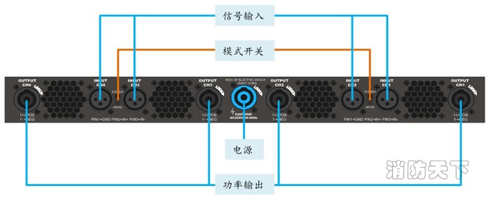M4x系列型號第一位字母“M”表示為專業(yè)音響功放系列;